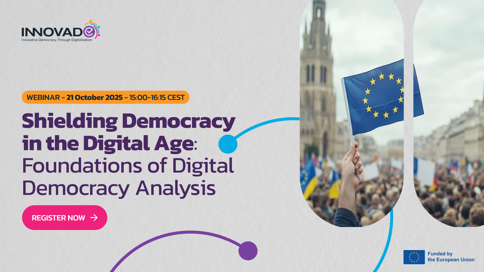 The INNOVADE digital democracy webinar explores how digitalisation is reshaping political participation, communication, and governance. As democracies face growing challenges from misinformation and algorithmic politics, the event will discuss how digital tools can strengthen civic engagement and democratic resilience.